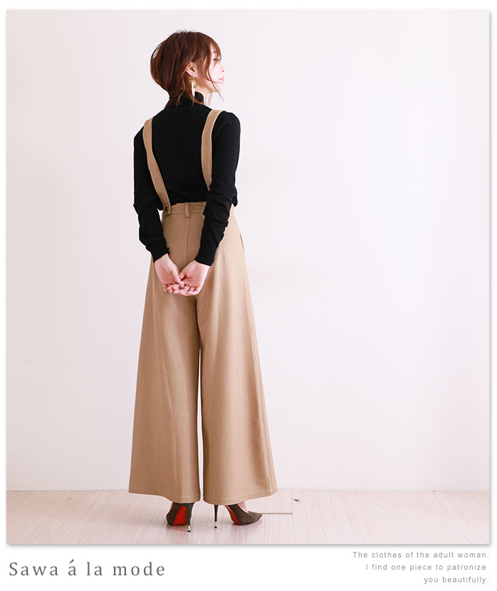 サスペンダーがセットになっていて、取り外し可能で雰囲気が変えれるワイドパンツです。