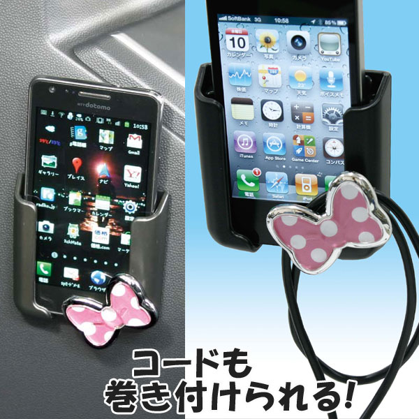 スマートフォンポケット (携帯ホルダー) ピンクリボン ミニーマウス ディズニー カー用品 ミニーマウス/カー用品→★
